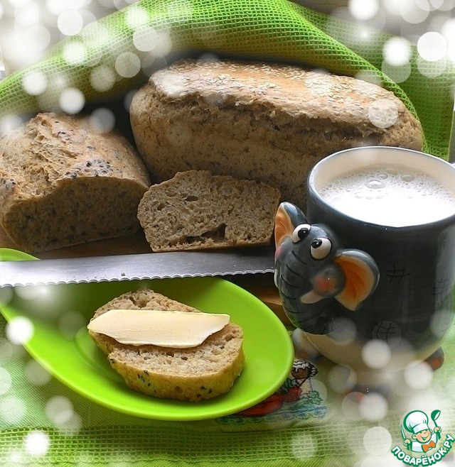 Свежий хлебушек с маслицем и молочком! Мммм... Безумно вкусно!!! Чувствую, что рецепт обоснуется в любимых и часто используемых! Пекла с "5 злаками" вместо геркулеса. Дрожжи брала сухие(1ч.л. с горкой).20 мин дрожжи с хлопьями постояли и примерно минут 40 готовое тесто в миске под пленкой. Разложила в формы и поставила в горячую(220)духовку. Через 20 мин убавила до 180 градусов и допекала еще 30 мин. В процессе пару раз сбрызгивала хлеб водой из пульверизатора. В железной форме посыпАла кунжутом, в силиконовой - калинджи. Корочка на буханочке из силикона чудесная вышла везде, а на хлебе из металлической - корочка только сверху, бочка и низ мягкие(но все пропеклось). В общем буду еще печь и экспериментировать!