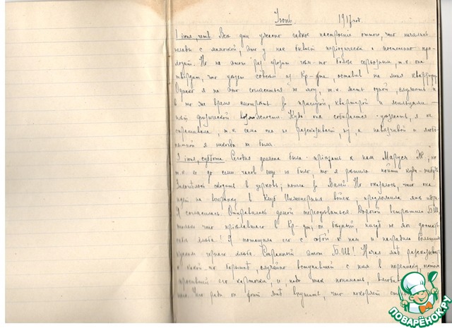 Наступили очень тяжелые времена, она забрала к себе смертельно больную мать и сестру. И в двадцать лет она стала главой семьи.По счастью удалось сохранить некоторые фамильные драгоценности, распродавая которые они смогли пережить голод. Но избежать уплотнения не удалось и от шикарной квартиры остались только три комнаты, а в коридоре и на кухне появились соседи.Выжить в одиночку в этих условиях было невозможно. И как Скарлетт, она поклялась, что голодать больше не будет. Тогда-то и приняла предложение перспективного краскома, моего двоюродного деда.Этот брак дал ей возможность отчасти вернуться к прежнему образу жизни. Она не работала, занималась рисованием, шитьем, вела дневник, читала. Так же стали часто собираться гости,- новые артисты, офицеры, уже красные.Она была прекрасной, гостеприимной, хлебосольной хозяйкой. И это от нее я унаследовала старинные книги по кулинарии и ее персональные книжечки рецептов.Правда, обложки не сохранились и листы рассыпаются. но в переплет не отдаю, боюсь потерять. вот они: