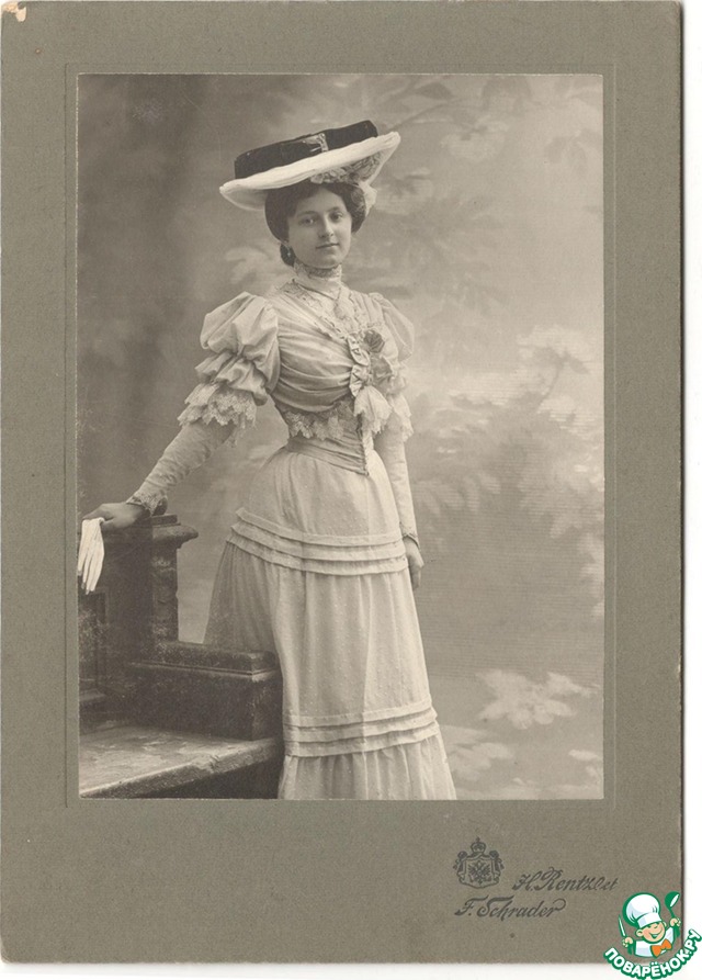 Это моя пра. Я мало знаю о ней. Происходила она из очень обеспеченной семьи. Рано овдовела и была вынуждена твердой рукой вести домашнее хозяйство. Имела прислугу, но считала, что должна сама всё знать по хозяйству, чтобы не подорвать семейное состояние и достойно воспитать детей.
