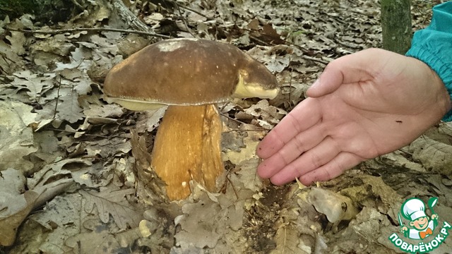 Это мы удачно набрели на полянку! Справа рука моего супруга,для сравнения! Хорош,здоровяк?