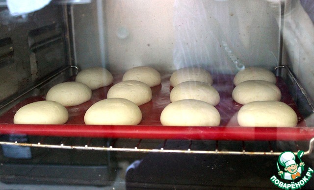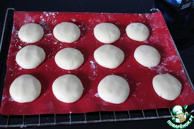 Обмакнуть руки в муку. Разделить тесто на кусочки одинакового веса, скатать шарики одинакового размера (выкладывая на противень застеленный силиконовым ковриком). Прихлопнув сверху, придать шарикам форму лепешки.