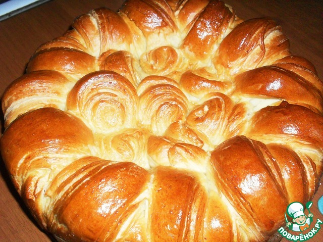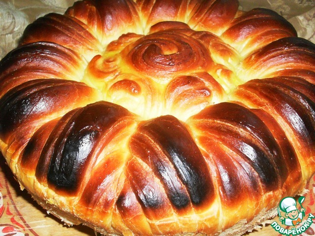 Благодаря вашим отчетам,поварятки,наткнулась и на эту красотищу!Рецепт Наташеньки( natapit ) "Нарядная сдобная погача" https://www.povarenok.ru/recipes/show/121220/