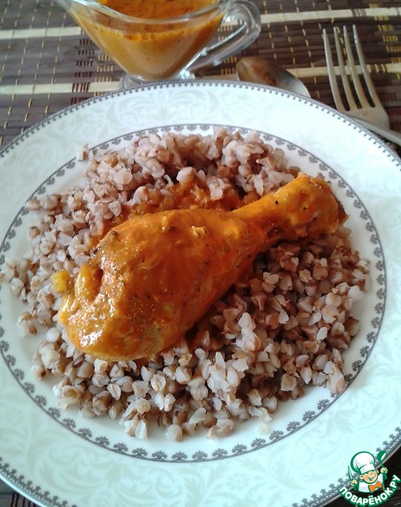 Великолепная курочка, у меня голени были! Соус получился наивкуснейший! Я добавила ещё хмели-сунели и молотого сушеного чеснока. Как же ароматно!!! Легко и просто готовить!!! Шикарный рецепт!