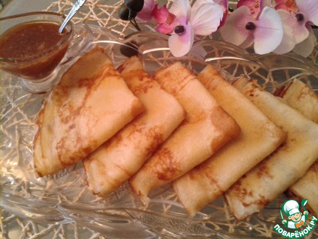 Великолепные блинчики! С карамельным соусом ммм…!!! Нам очень и очень понравились!!! Всё хорошо размешалось (я пользовалась миксером).
