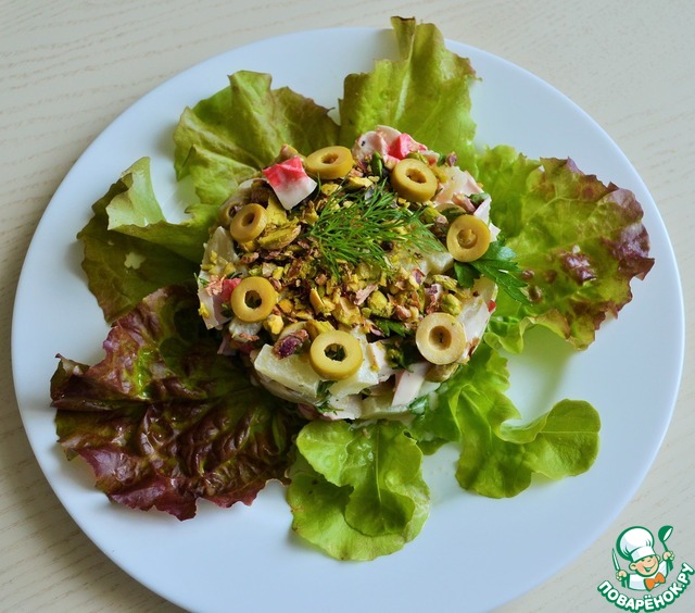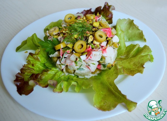 Замечательный салат, крабовые палочки зазвучали по новому, спасибо за рецепт, люблю такие не утяжеленные картошкой или подобными продуктами салаты. Рецепт увидела у JeSeKi https://www.povarenok.ru/blog/show/48806/ в отчете.