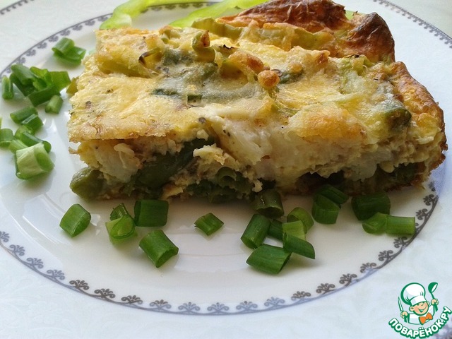 Очень и очень вкусная запеканка! У меня фасоли было мало, поэтому добавила цветную капусту! Перец зеленый. Заливка просто шикарная!!!