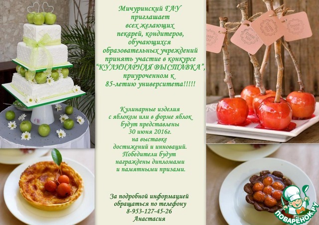В условиях конкурса указано обязательное использование яблока в выпечке, т.к. яблоко - это символ Мичуринска, а университет аграрный. И вот я выбрала два рецепта на Поваренке, готовила их и раньше :