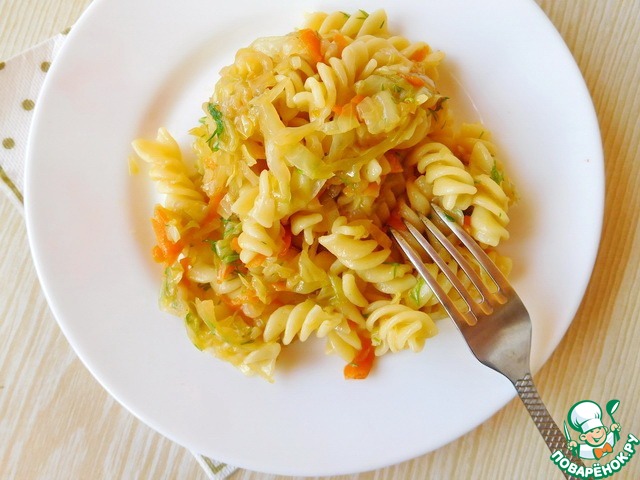 "Теплый капустный салат с макаронами"