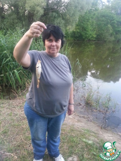 Т.к. я рыбак без опыта, то очередную рыбку выдернула из воды с такой силой, что она оказалась сразу на столе, который стоял метрах в 4 от воды за моей спиной.