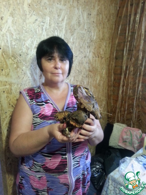 Была у меня мечта- собирать грибы. Но увы, пока мы приехали, установилась жара и грибов не стало. И вот в один из дней племянник где то отыскал вот такие грибочки , называются Польские.