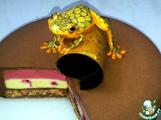 Декор: лягушка из пластичного шоколада, завиток и пояс из тёмного шоколада.[cut]