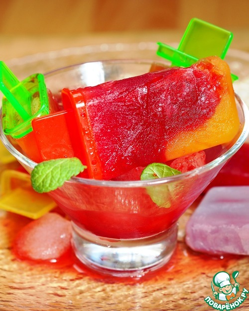 1. Персиково-вишневый фруктовый лед https://www.povarenok.ru/recipes/show/111012/ от Катюши. Прекрасный рецепт для очень жарких дней! Правда, как только я его приготовила у поставила в морозилку...у нас резко похолодало. Зато я теперь знаю верный способ, как в сильную жару сделать погоду попрохладнее