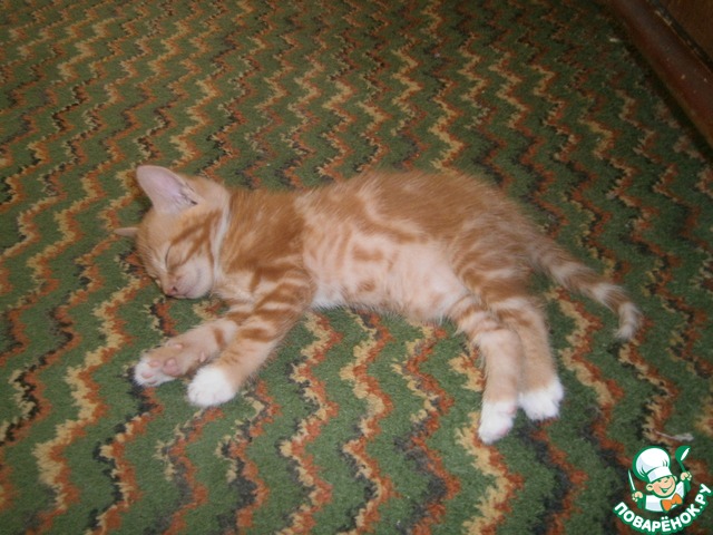 Благодарю всех поварят за рецепты, внимание и поддержку. И напоследок хочу показать вам "наглую рыжую морду". Вот такое солнышко подрастает у моих родителей. Это он устал шкодничать.