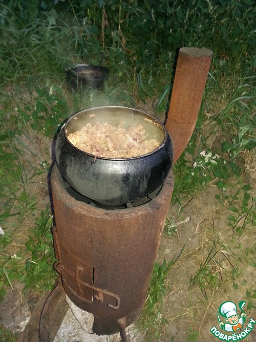 Застали мы праздник Ивана Купалы. Конечно папоротник никто искать не пошел, но друг пригласил на плов ( ему свежий барашек перепал). Готовился плов во дворе на печке самодельной в огромном чугунке.