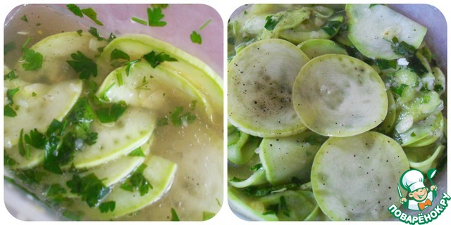 Однажды, возвращаясь домой с дачи, разговорились с соседкой о консервации. Она мне и поведала о быстром способе маринования кабачков (но не для консервирования, а для еды). Я забыла расспросить подробности, поэтому на следующий день позвонила уточнить рецепт.