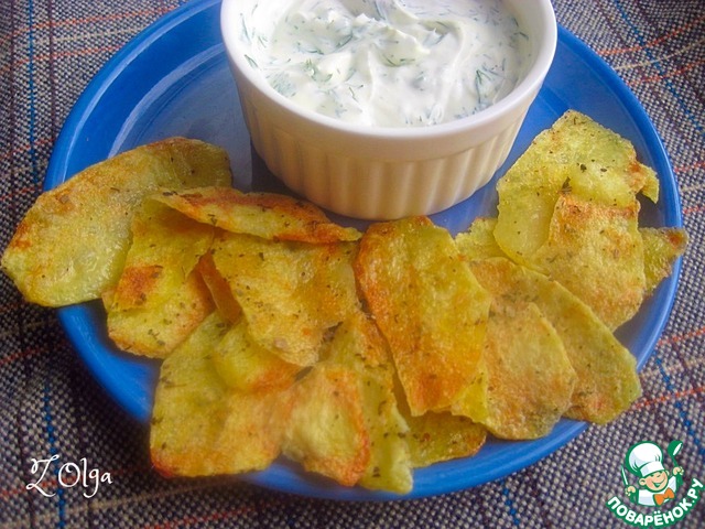 «Чипсы в микроволновке» https://www.povarenok.ru/recipes/show/35205/ по рецепту Ларисы larik_malasha! Все отлично получилось! Из специй добавляла итальянские травы, к чипсам соус - сметана+укроп!