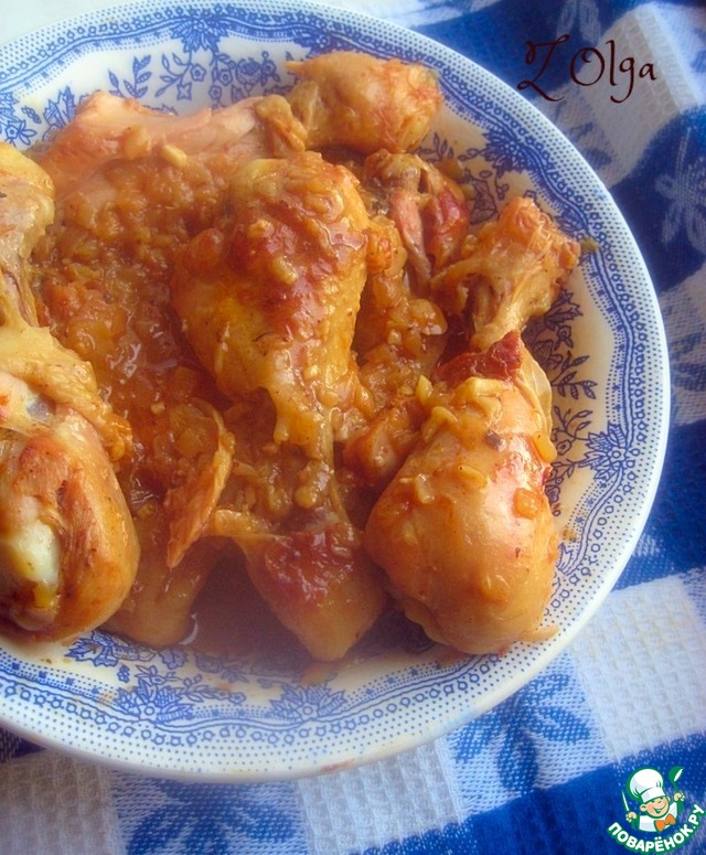 «Курица в луковом маринаде» https://www.povarenok.ru/recipes/show/106237/ по рецепту Елены Esenija! Ароматная и вкусная получилась! Маринад классный! После того, как обжарила с одной стороны, добавила весь лук из маринада, он у меня порезан мелким кубиком, и дальше уже готовила все вместе как в рецепте!