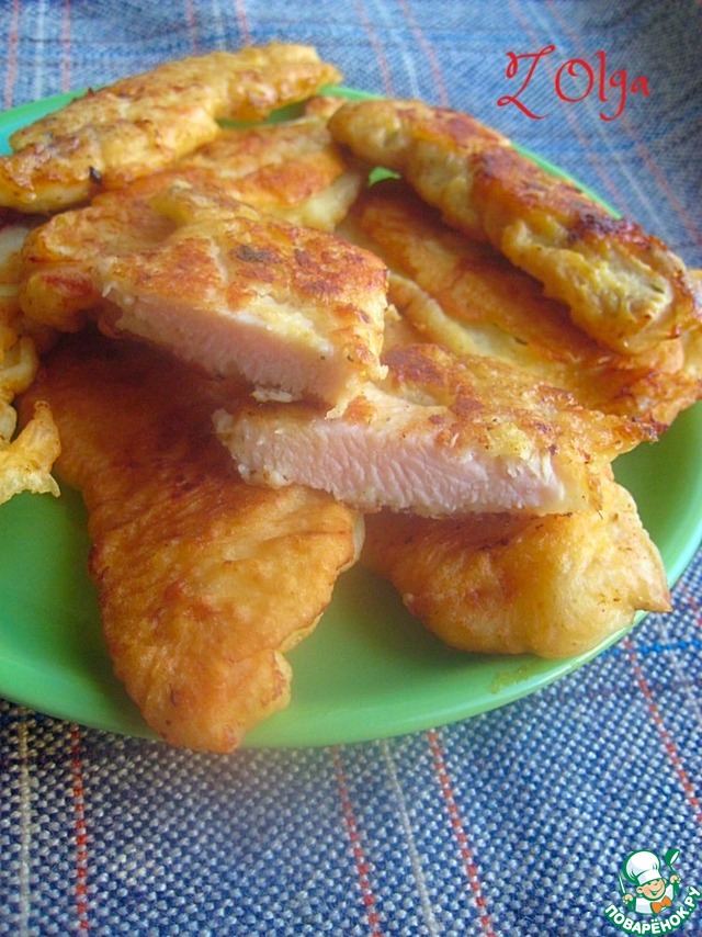 "Куриные грудки в кляре "Скорая помощь" https://www.povarenok.ru/recipes/show/81097/ по рецепту Оленьки Демурия! Быстро готовится, очень вкусно получается и очень быстро съедается))).