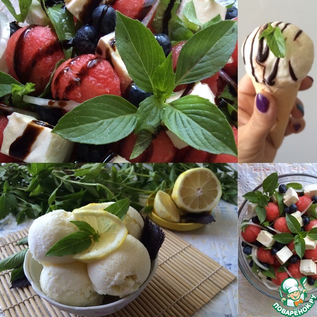 И не закуску базиликовой свежести: арбузный салат и базиликовое мороженое