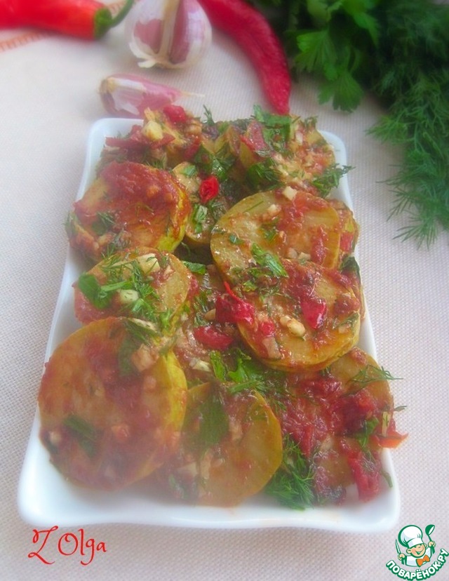 Кабачки "Огонек" https://www.povarenok.ru/recipes/show/90911/ по рецепту Ларисы Glaros! Еще один рецепт, добавленный в копилочку «вкусно-кабачковых»! Получилась острая, пикантная закуска!