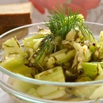 Ингредиенты: Рыба, Огурец маринованный, Лук репчатый, Укроп, Соль, Перец черный, Перец сладкий красный, Масло растительное.