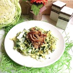 Ингредиенты: Яйцо куриное, Соевый соус, Соль, Капуста белокочанная, Горошек зеленый, Сыр твердый, Масло растительное, Укроп.