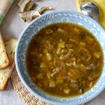 Ингредиенты: Масло растительное, Грибы, Шампиньоны, Картофель, Морковь, Лук репчатый, Макаронные изделия, Соль, Перец черный, Зелень.