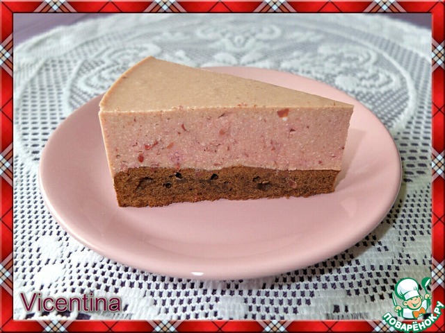 Делала двойную норму на форму 24см. Торт получился довольно привлекательным, хотя далеко не такой яркий и насыщенный. Но увы не совсем в нашем вкусе. Ожидала большего. Бисквит на самом деле совсем не бисквит, а очень плотный корж, но со своими преимуществами - во-первых он достаточно вкусный, во-вторых выпекся совершенно ровным без выпуклости по середине и сохранил свои пропорции по диаметру, не уменьшился после выпечки. Из вишни сок не выжимала, просто хорошенько измельчила и смешала массу с остальными ингредиентами. Вкус творожно-вишневого мусса, к сожалению, не порадовал. Рецептом коржа вероятно еще воспользуюсь