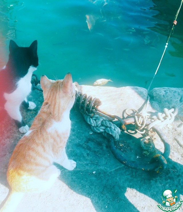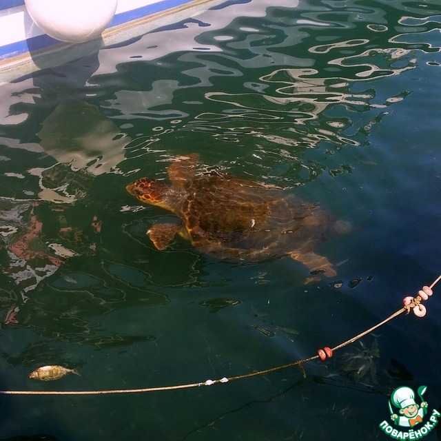 И больше всего запомнилось внеплановое знакомство с морскими черепахами. Их кормили тюлькой (без головы) прямо на набережной. Черепахи всплывали и издавали благодарное шипение. Рядом присоседились и коты, которым тоже кое-чего перепадало от черепашьего корма... ну а те коты, которых не накормили, таскали рыбешку из улова...