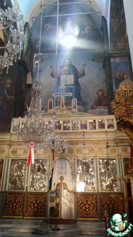 Внутри в церквях - привычный нашему взгляду вид, но дополненный изредка греческими флагами: