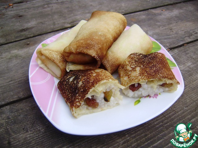 Блинчики великолепные, никогда бы не подумала, что они постные. Начинка очень интересная, но ее действительно много получается. Так что половину риса можно смело использовать для другого рецепта.