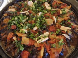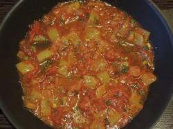 Заливаем всё второй половиной соуса. Добавляем, если нужно, немного воды и отправляем запекаться в духовку при температуре в 180-190 градусов на 40-45 минут.