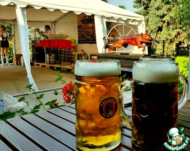 Пиво Баварское "Пауланзр". Литровые бокалы.5 евро кружка.