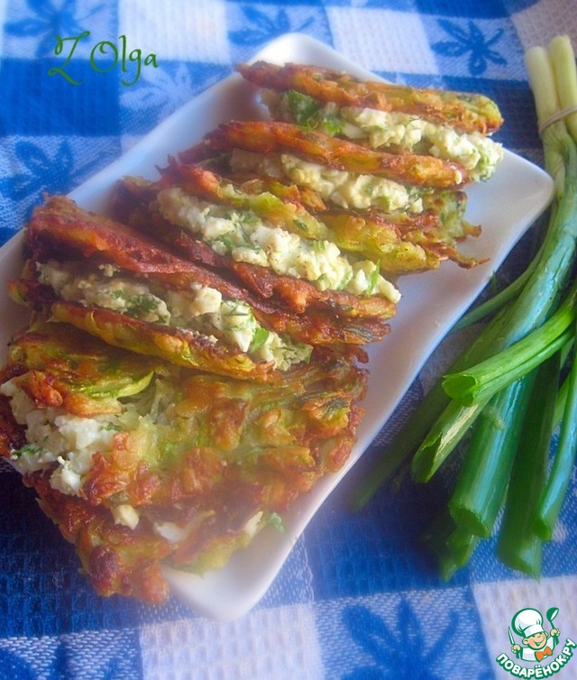 Кабачково-овсяные драники https://www.povarenok.ru/recipes/show/130067/ по рецепту Ниночки Nienulka! Кабачковые оладушки и драники в сезон готовлю довольно часто, а вот сделать их с начинкой, не додумалась! Ниночка, отличная идея! В начинку добавила ложечку сметаны)))