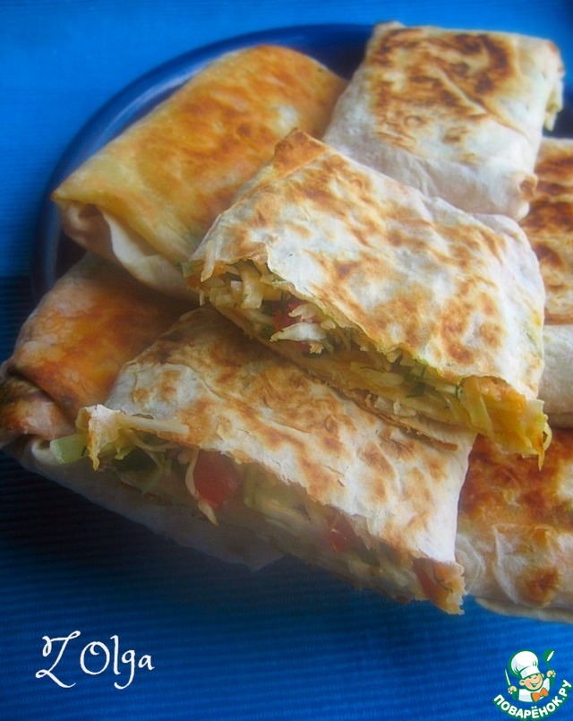 Буррито по-русски с капустой https://www.povarenok.ru/recipes/show/116879/ по рецепту Женечки Janet! Вкусно получилось! Начинку сделала без колбасно-мясных ингредиентов))) В капусту добавила зелень и зеленый лук! Обжаривала на сухой сковороде!