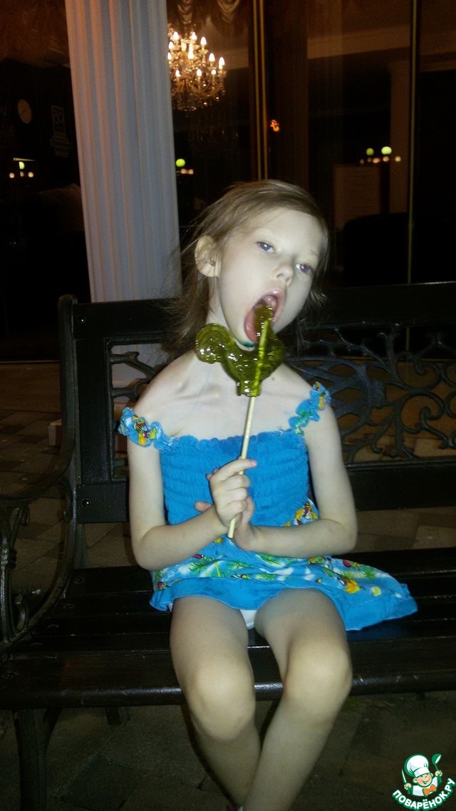 Продегустировали зеленый леденец (так бы на мясо мы ротик открывали