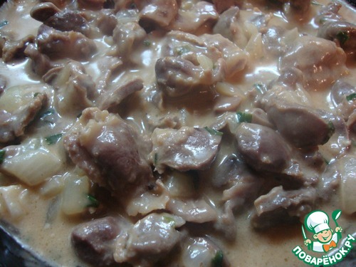 Фрикасе из куриных желудочков.. https://www.povarenok.ru/recipes/show/105683/ очень вкусно, больше нечего добавить!