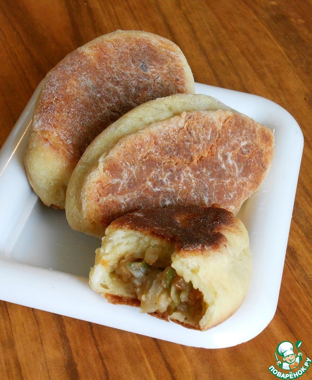Пирожки готовлю крайне редко, но этот рецепт привлек простотой и скоростью приготовления. Отличный рецепт, сразу забрала себе в КК! Мой муж равнодушен к выпечке, а от этих пирожков был в восторге. Начинка у меня – картошка с жареным луком и зеленью.