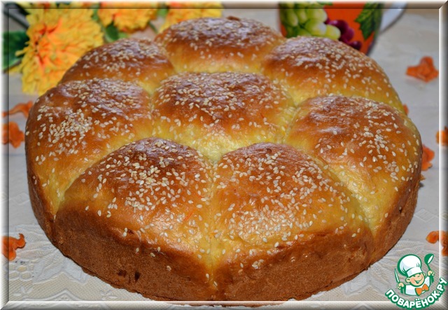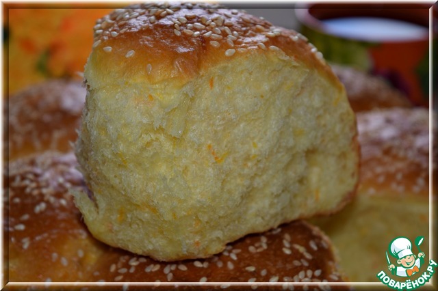 Воздушные, почти невесомые, булочки. Пышные, мягкие, нежные, ароматные. А какие солнечные и красивые! Конечно же, очень вкусные. (позволила себе одно отступление от рецепта:ставила тесто на сыворотке, а не на молоке)
