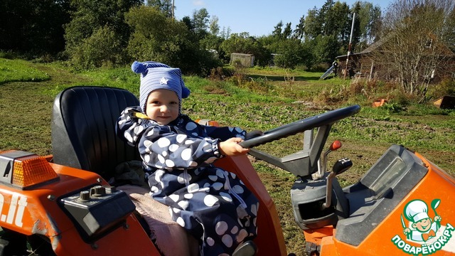 Лёвушка больше всего оценил... трактор. Как только мы выходили погулять на улицу, он тут же бежал к трактору, залезал на него и нажимал всё что мог...
