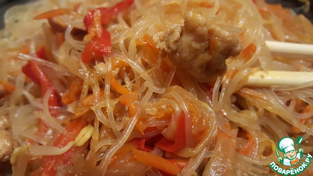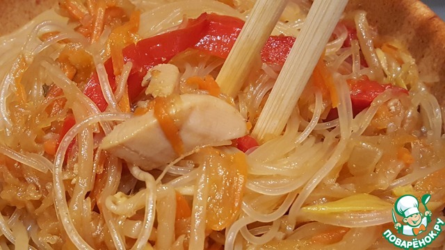 Фунчоза с дайконом и ростками фасоли.