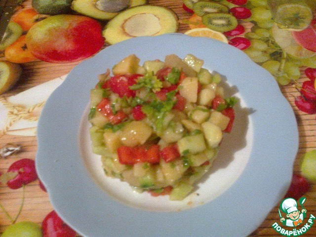 Нужно было приготовить быстрый ужин. Порывшись в КК нашла этот салат. Салатных листьев не оказалось. Получилось вкусно и без них.