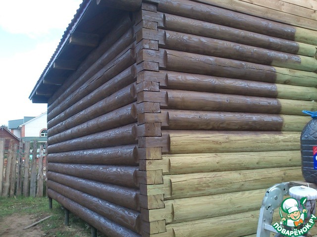краску покупали в областном центра. долго выбирали, читали отзывы в интернет, советовались с хозяевами срубов. купили Тикурилу. дорогую, но...! какая она классная! легко ложится, хорошо смотрится, в ее состав входит воск и дерево и играет красками и блестит под солнышком и приятно на ощупь. и быстро сохнет и совсем не пахнет. красить мне очень понравилось. прямо работа для души.