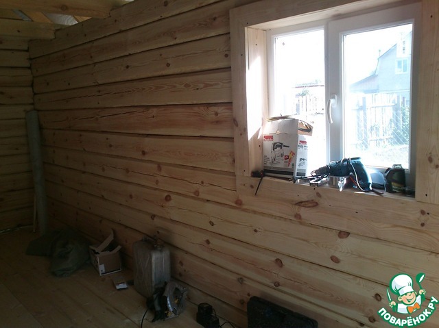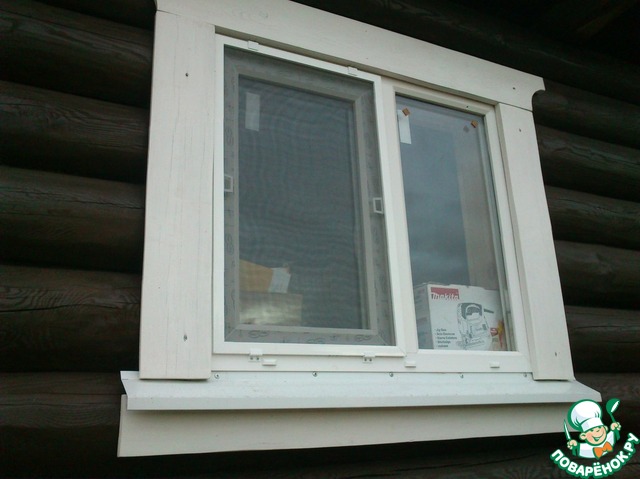 заказали окошко. муж его установил сам. и сам сделал наличники. (я помогала шлифовать для него доски-тоже понравилось)