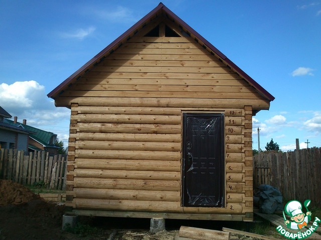 вот такой ее срубили и поставили нам в декабре. сразу же покрыли крышу.