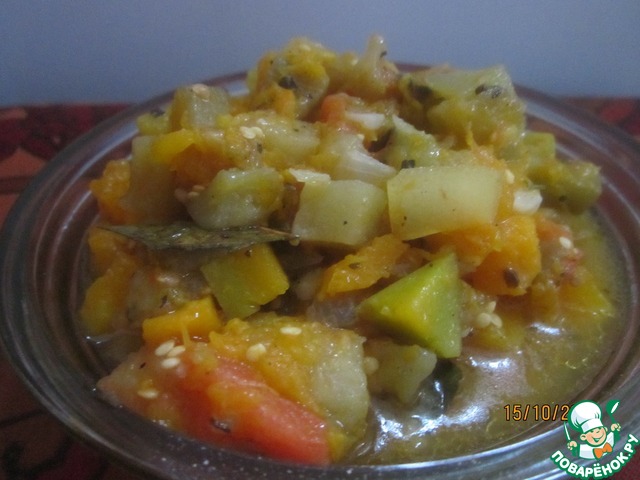 Блюдо понравилося очень, сочно, не сладко. тыква подружилась из баклажаном, вкус интересный, додала болгарского перчика, у меня тоже овощи немного развалились, но вкус от этого не пострадал, орешков дома не оказалось, но обязательно попробую с ними. рецепт супер.
