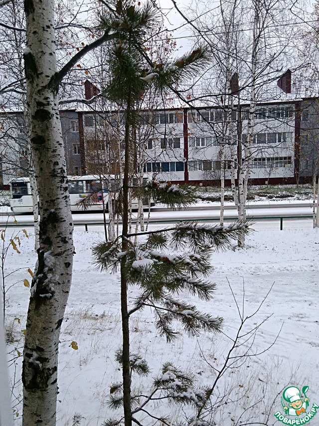 Первый снег у нас выпал 11 октября. Он падал и сразу таял. А сегодня утром, проснувшись, увидела такую картину
