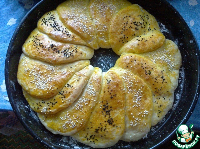 Прекрасный хлеб, очень пушистый. Пекла на воде, посыпала кунжутом и калинджи. Не смотря на то, что хлеб и пирог-рататуй пекла в один день, до вечера уже не было и крошки.
