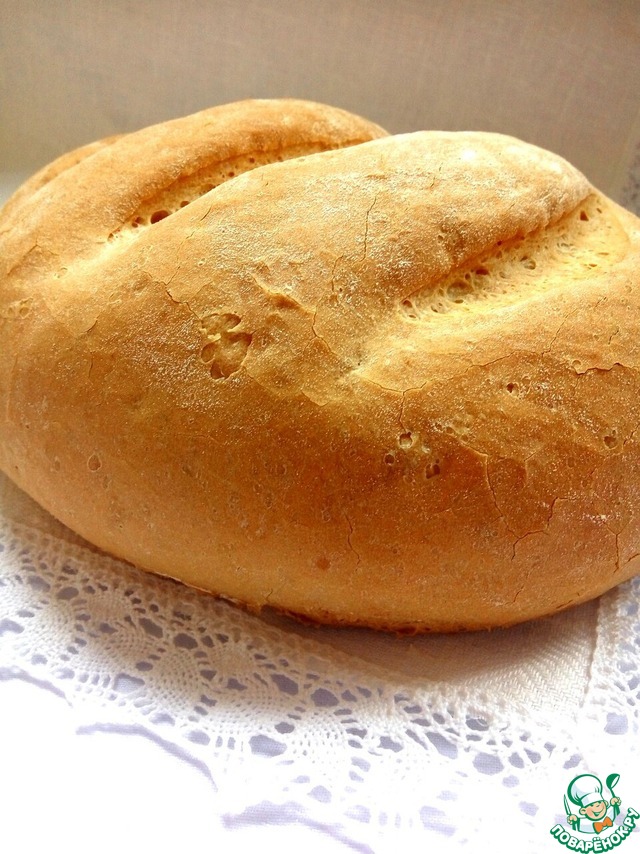 Отличный хлебушек, по своей структуре мне чем-то напоминающий багет. Корочка на столько хрустящая, что покрывается трещинками при разрезе. Хлеб получился практически невесомым при сравнительно не маленьких размерах буханки. Пекла его уже не один раз! Спасибо за отличный рецепт!!!