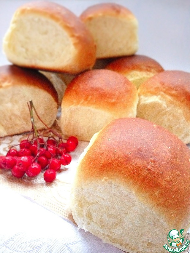 Долго не могла определиться куда же их их отнести: к Хлебу или к выпечке к чаю. Наверное, больше к Хлебу. Великолепные, воздушные булочки, пуховые как облака! От ГОСТ- рецепта никогда не отступаю ни на шаг, только муки пошло чуть больше. Мякиш пуховый и нежный. Для нас отлично подходит в качестве хлеба, особенно для первых блюд. Лариса, спасибо огромное за интересный рецепт!!!